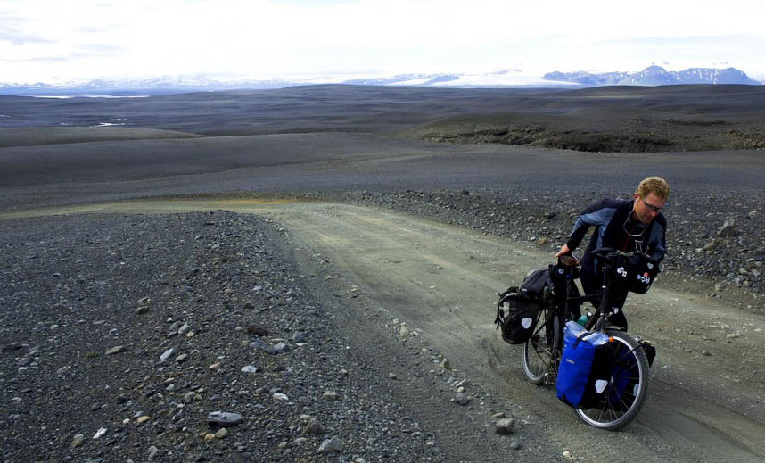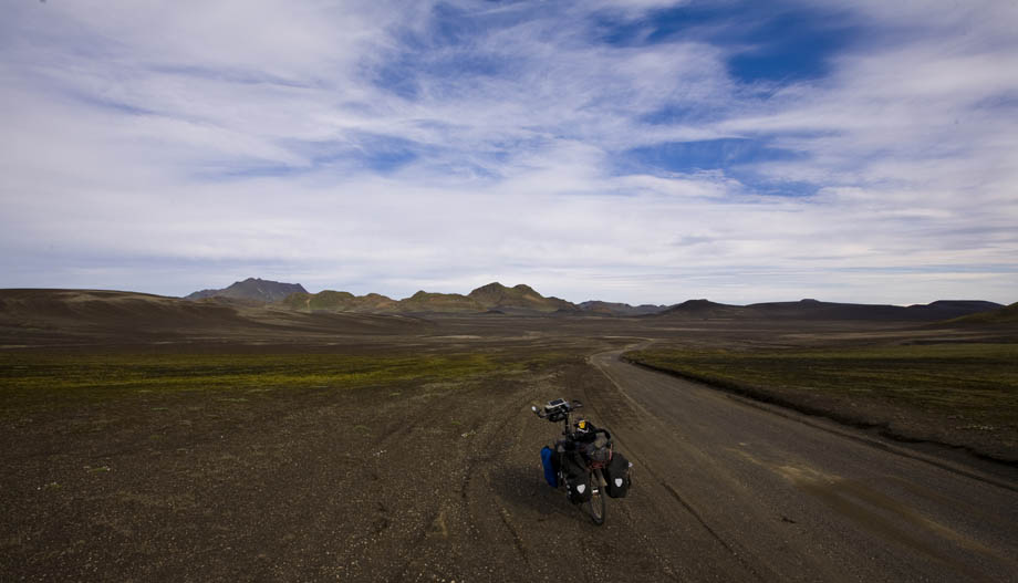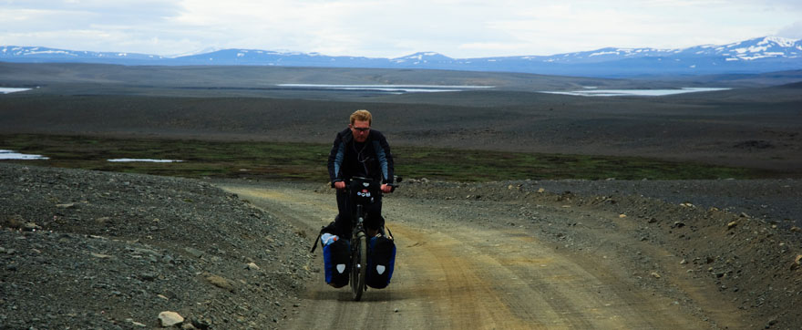 Die Schotterpiste F26 (Sprengisandur) ist die längste Hochlandpiste. Entlang des Vatnajökull müssen mehrere Flüsse gefurtet werden. Von hier zweigt irgendwann die F910 ab, die zur Askja führt. Die Sandpiste F910 teilt sich in eine südliche und eine nördliche Verbindung. Welche einfacher ist kann ich nicht bewerten, da ich nur die nördliche gefahren bin. Auf beiden Möglichkeiten bleibt stundenlanges Schieben, Drücken des Bikes nicht aus ! Endlos oft schlagen Pedale in meine Hacken...und das etwa 3 Tage lang !!! Bei Regen eher länger, da der dann klebriege Sandmatsch die Reifen irgendwann sehr schwergängig macht.