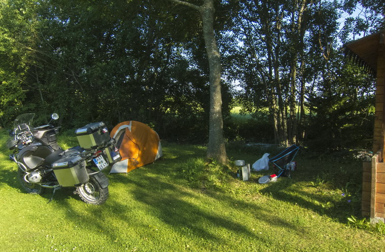 Am nächste Tag weckt mich die warme Sonne, da mein Lagerplatz keine Bäume mit kühlendem Schatten besitzt.
