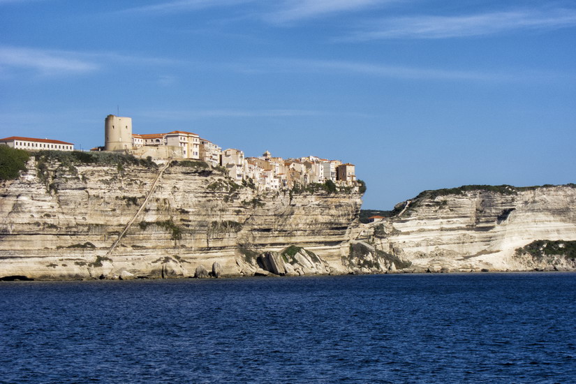 Der schönste Blick auf Bonifacio ist vom Wasser. Jetzt wird auch deutlich wie nah die Gebäude am Abgrund der Klippen stehen.