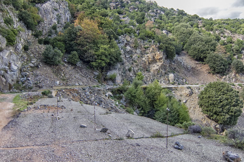 Die eingeschlagenen Metallpfosten sollen offensichtich ein Abrutschen der Straße vermeiden?! ;-)