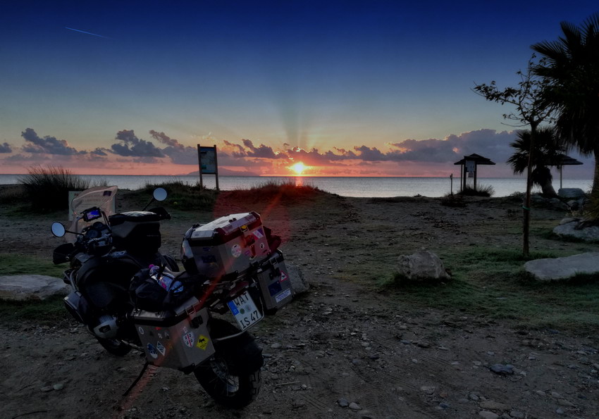 Noch vor Sonnenaufgang ist man auf Korsika. Dann kann man die Möglichkeit nutzen in einem der bereits geöffneten Straßenlokale ein leichtes Früstück, samt Kaffee, einzunehmen....oder man sucht sich einen stilles Plätzchen und zaubert sich selbst was Leckeres. Dazu kann man den Sonnenaufgang genießen...